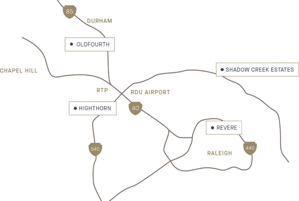 We build custom homes and develop communities throughout the Research Triangle area. Let us know where you’d like to be.